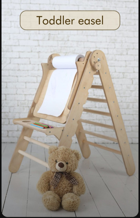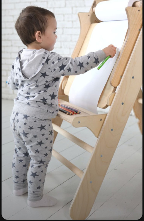 پایه نقاشی کودک مدل نردبانی، یک ابزار کاربردی و جذاب برای رشد خلاقیت کودکان است. این پایه از چوب طبیعی ساخته شده و طراحی آن به گونهای است که مانند یک نردبان باز میشود. در قسمت بالایی این پایه، یک نگهدارنده مخصوص برای رول کاغذ تعبیه شده که امکان تغییر آسان کاغذ را فراهم میکند. با این طراحی هوشمندانه، کودک احساس میکند روی دیوار نقاشی میکشد، اما بدون نیاز به نگرانی بابت رنگآمیزی دیوارهای خانه!
