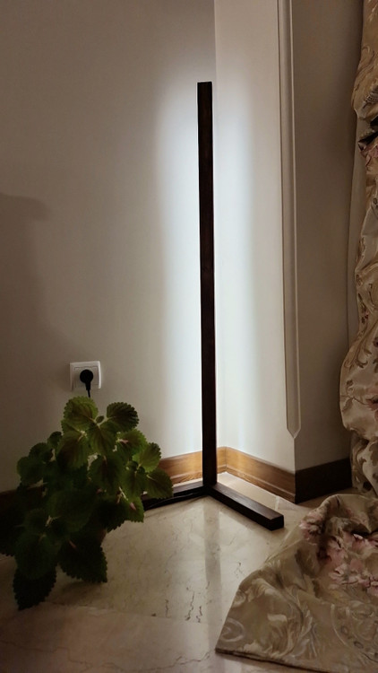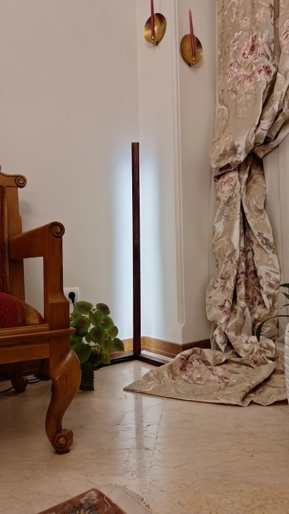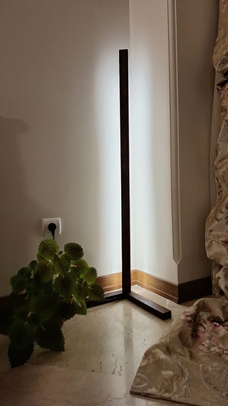 یکی از نقاط قوت این آباژور طراحی مینیمال آن است؛ بدنه چوبی باریک و عمودی با پایهای Lشکل، بدون اینکه فضای زیادی اشغال کند، در گوشه دیوار مینشیند و بهخوبی با سایر اجزای دکور هماهنگ میشود. پرداخت چوب حس طبیعی و گرمایی خاص به محیط میبخشد.