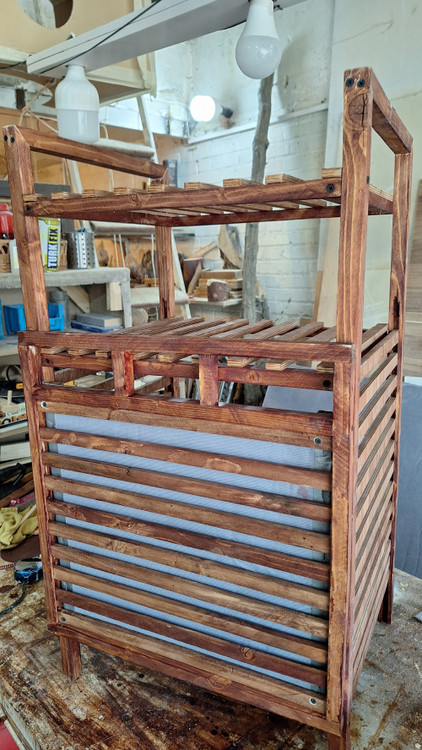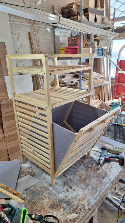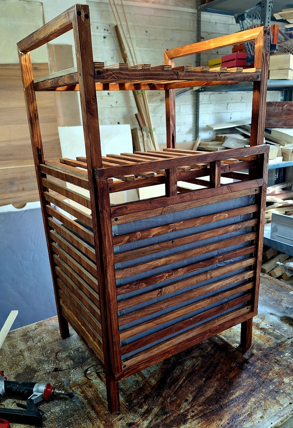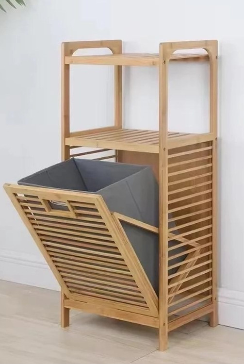 سبد لباس چوبی دوطبقه ساخته شده از چوب روس یا همان کاج، با طراحی مینیمال و مقاوم در برابر رطوبت، انتخابی مناسب برای خانههای مدرن است. قسمت پایین دارای سبد پارچهای ثابت از جنس چوب با روکش پارچه برای نگهداری لباسهای چرک بوده و بخش بالایی بهعنوان طبقه نگهدارنده حوله، شوینده یا وسایل تزئینی کاربرد دارد.